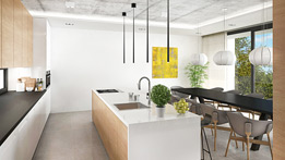 Ház: Modern-minimál dizájn - A+ energia osztályú épület - Szolár rendszer - Rejtett sínes panorámaablakok - Egyedi belsőépítészet - Látványkandalló - Látszóbeton felületek - Különleges lebegő lépcsős lépcsőház - Belső átrium látványkerttel - Felső tetőterasz - Különleges, egyedi, automata árnyékolástechnika - Legmodernebb konyhatechnika - Okos megoldások, távvezérelhető megoldások