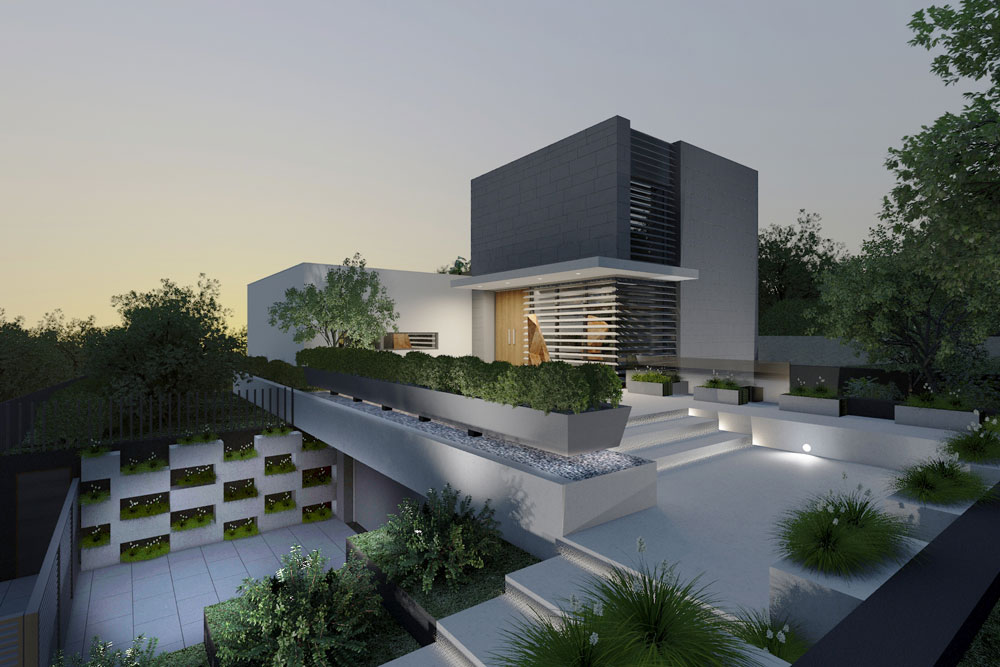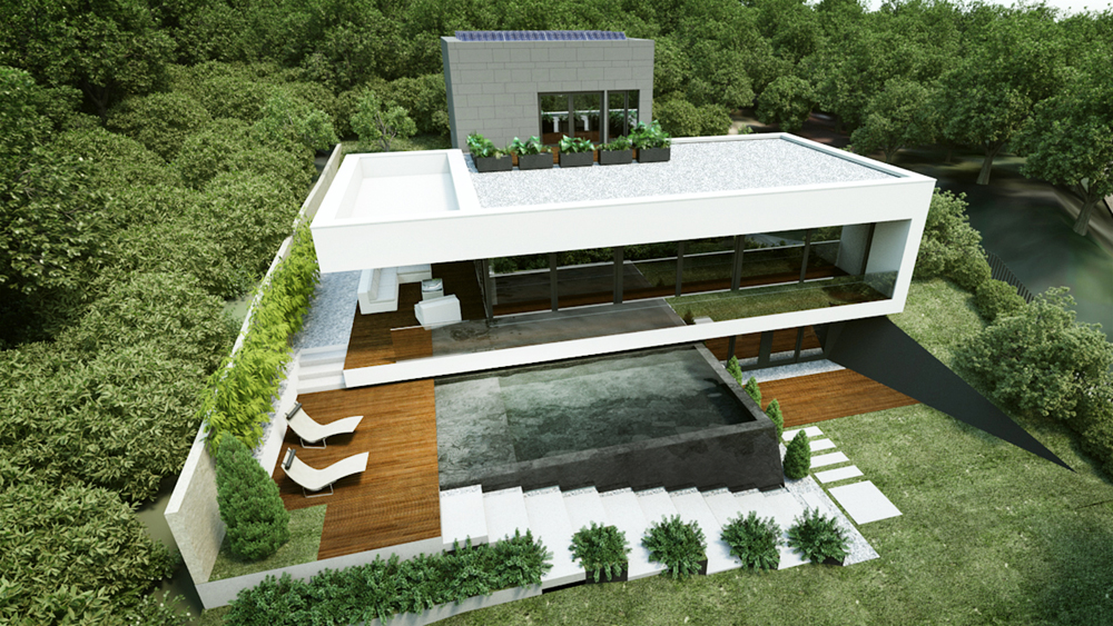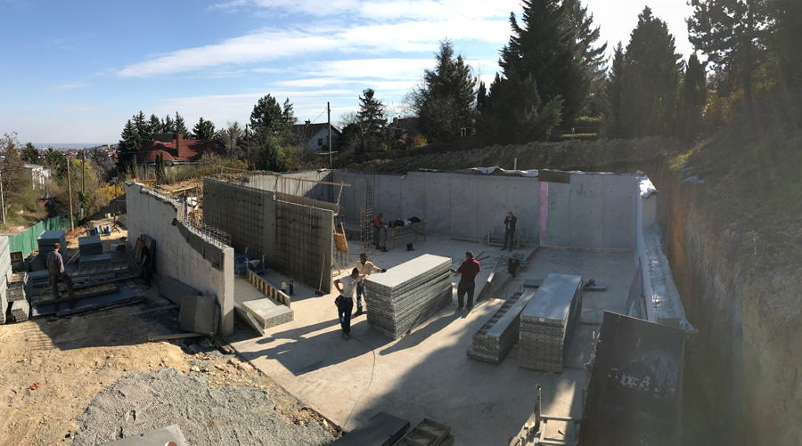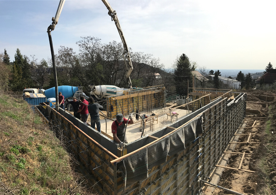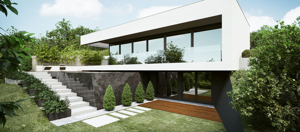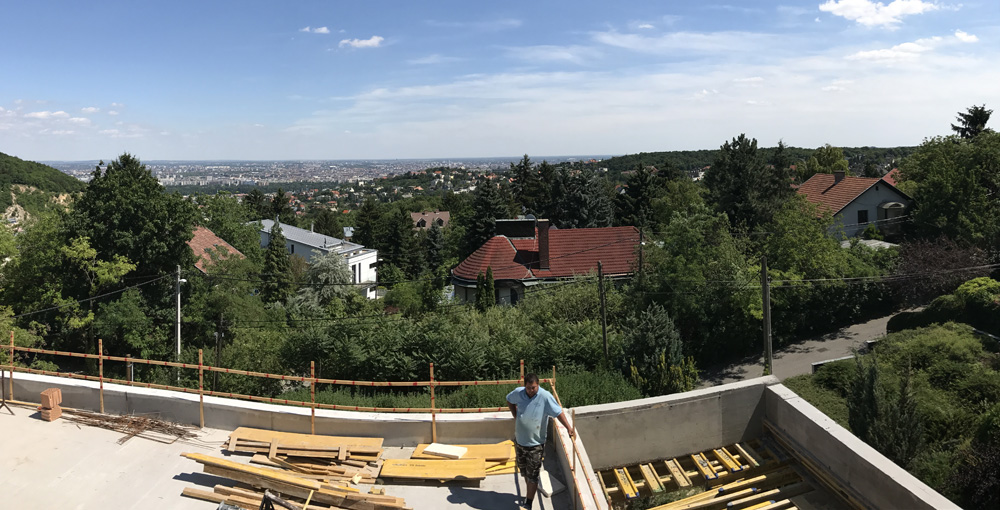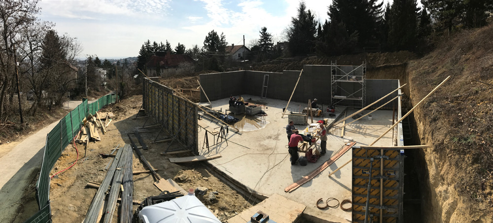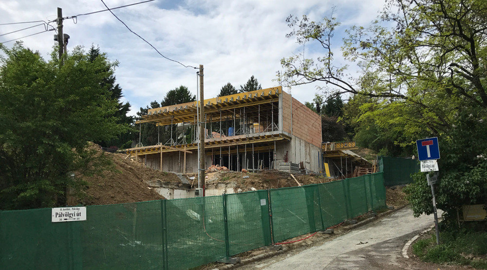 Telek: A budai dombok legszebb részén Pálvölgyön építünk egy minimál típusú családi villát. A telek elhelyezkedése teljesen egyedi, mivel a telek terepszintje az utcához képes 2 m magasan van, így onnan rálátás nem lehetséges. Saroktelek mivolta miatt szomszédok tekintetében is szerencsés, mert csak 2 db szomszéd van, de azok sem látnak rá a telekre, mivel a telkeken lévő házak sokkal feljebb helyezkednek el. A telek teljesen intim hangulatú és panorámás.